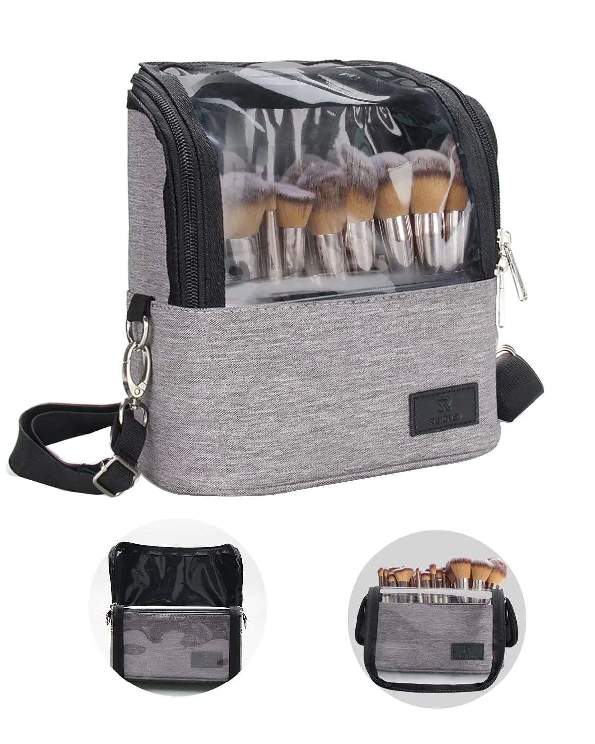 [Standable Foldable: This Makeup Brush Bag easily accommodate brushes of various sizes. It can stand independently to facilitate the use of brushes. And You can fold down to grab the brush you need more conveniently. Adjustable Divider: This Makeup Brush Bag special design with 2 dividers you can adjust as needed. Maximize the use of space. High-quality Material: This Makeup Brush Bag choose high-quality waterproof fabric and visual TPU material add a protective frame at the bottom. Make this makeup brush bucket bag not only waterproof and easy to clean easy to find items but also do not have to worry about long-term use will make it long wrinkle and has a good protection function. Large Capacity and Multifunction: This Makeup Brush Bag can accommodate120 pcs small size or 27 pcs large makeup brush makeup brushes the length of the makeup brush should not exceed 8 inches / 20cm. It not only can place cosmetic brushes but also cosmetics electronics jewelry etc. Multiple Carrying Methods: This Makeup Brush Bag has detachable shoulder strap design can be used as a messenger bag handbag and waist bag. Suitable for travel and home more convenient to use.]