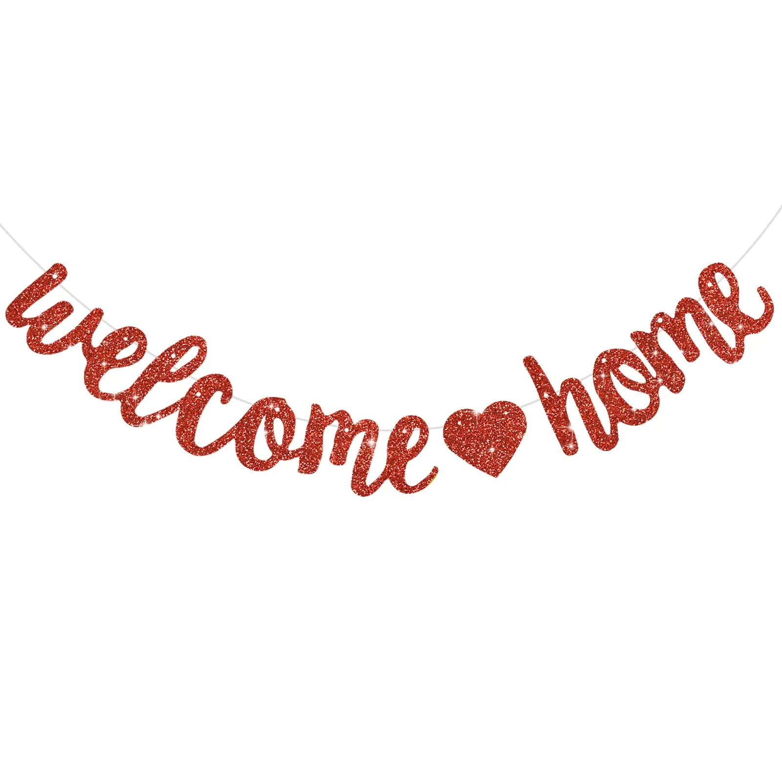 Glitter Welcome Home Banner【Product includes】△ 1pcs of"Welcome Home" shiny banner(No-assembly).shiny color and beautiful design can decorate your party well.【Product design】Special design△ Glitter style — bringing you a lot of pleasant visual enjoyment.△ Beautiful designs — perfect for many party decorations.【High quality】High quality card stock material△ Reusable —lightweight and easy to store for the next time using.△ Time saving— Our banner is Pre-strung that means NO DIY required! It is ready to hang and it is very convenient.【Great role】△ Eyecatching — Party Decorations are perfect for the Special Someone Celebrating Their Big Day By Adding Color and Character to Your Event.△Impressive — This banner is nice for your party and helps announce big momentsit will make your party very charming and dreamy.△ Wide applications — You can add the Glitter Banner to mantels banisters windows dessert tables or use as a photo backdrop on welcome homeHomecomingHousewarmingGraduation Ceremony Family Reunion Military Return party.